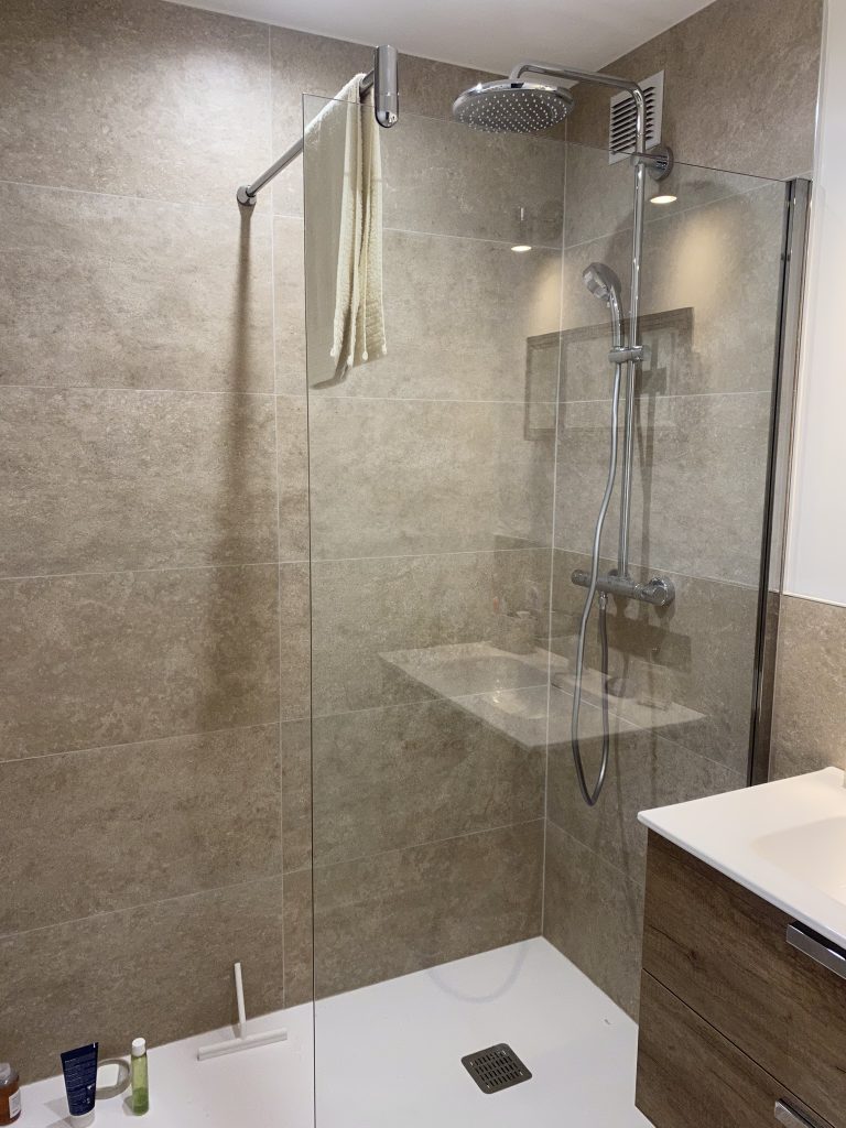 Nous avons réalisé ici des travaux de rénovation dans une salle de bain à Chalon-sur-Saône, en optant pour une palette de tons minéraux. Cette transformation a insufflé à la pièce une ambiance naturelle et apaisante, évoquant les nuances subtiles de la pierre et du bois. Les matériaux choisis, tels que le carrelage et le mobilier, ont été sélectionnés avec soin pour créer un équilibre harmonieux entre esthétique et fonctionnalité. Le résultat final est une salle de bain élégante et contemporaine, où chaque détail contribue à créer une atmosphère relaxante et accueillante.